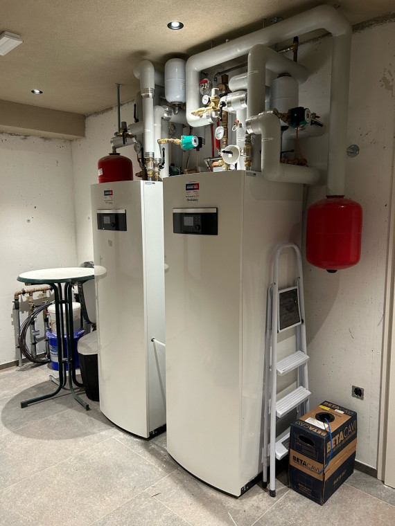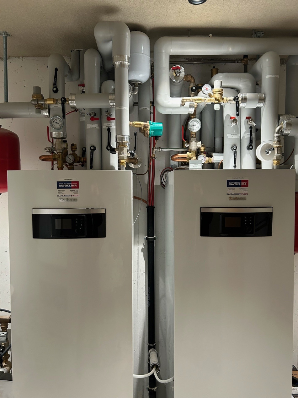 Die Anlagen decken den Heiz - und Kühl sowie Warmwasser und Lüftungsbedaf von 5 Wohungen mit Klimahaus A Standart ab.